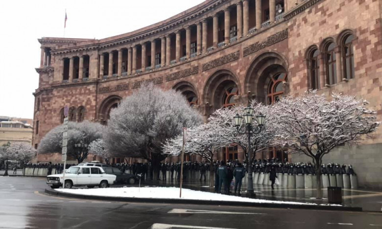 BlogԱյս պահին ոստիկանական մեծ ուժեր են կուտակվել կառավարության շենքի մոտ: Ոստիկանները մի քանի շարքով փակել են կառավարության մուտքը: