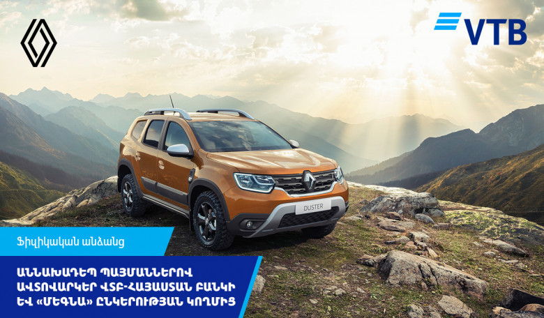 ՀասարակությունՎՏԲ-Հայաստան Բանկը և «ՄԵԳՆԱ» ՍՊԸ-ն համատեղ հաճախորդներին են առաջարկում ձեռք բերել Renault մակնիշի ավտոմեքենաներ՝ վարկավորման աննախադեպ շահավետ պայմաններով: