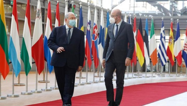 Շառլ Միշելն Արմեն Սարգսյանի հետ կայցելի Ծիծեռնակաբերդի հուշահամալիր