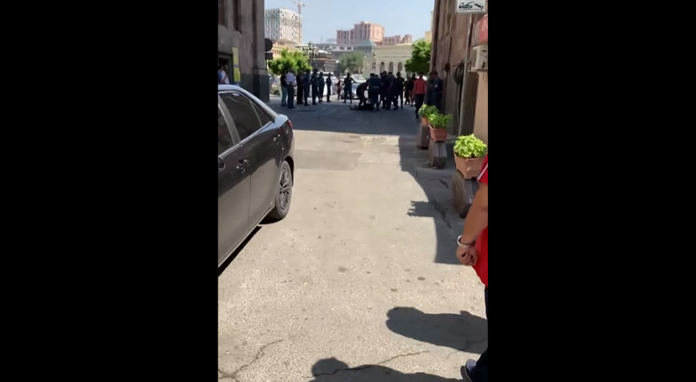 Քիչ առաջ, գետնին պառկեցնելու հրահանգով, ոստիկանները բաժին տարան Գեղամ Նազարյանին, ում որդին զոհվել է Արցախում