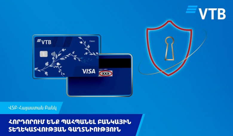 Հաճախորդների միջոցներն անվտանգ պահելու նպատակով՝ ՎՏԲ-Հայաստան Բանկը հորդորում է ցանկացած բանկային տվյալ կիրառելիս պահպանել գաղտնիություն: Բանկային քարտի տվյալները հաղորդակցման հարթակներում (մեսինջերներում) կամ հաճախորդի անձնական հեռախոսահամարին գրանցելու խնդրանքով կասկածելի հաղորդագրություններ ստանալիս՝ Բանկը կոչ է անում հաճախորդներին անզգուշությամբ չբացահայտել իրենց բանկային տվյալները, չտրամադրել բանկի քարտերի տվյալներն անհայտ կամ կասկածելի ծագման կայքերին, ինչպես նաև սոցիալական ցանցերի անհայտ օգտատերերին, կասկածելի անձանց, ովքեր պահանջում են կատարել քարտից քարտ փոխանցումներ, ինտերնետ- բանկինգից օգտվելիս՝ չպահել իրենց տվյալներն անծանոթ կայքերում, ինչպես նաև որոնողական համակարգի հիշողությունում: