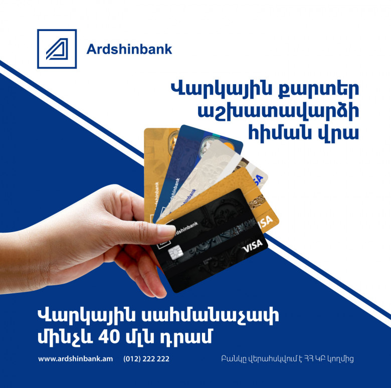 ՀասարակությունԵթե ստանում եք աշխատավարձ Արդշինբանկի միջոցով, ապա աշխատավարձի հիման վրա կարող եք ստանալ ոչ միայն անգրավ սպառողական վարկային գծեր, այլև վարկային քարտեր՝