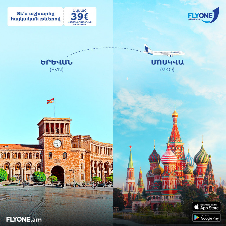 Flyone Armenia-ն սկսում է Երևան-Մոսկվա-Երևան երթուղով կանոնավոր ուղիղ չվերթները