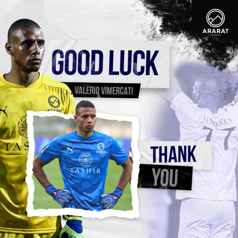 Սպորտ27-ամյա իտալացի դարպասապահ Վալերիո Վիմերկատին հեռացավ Հայաստանի փոխչեմպիոն «Արարատ-Արմենիայից»։ Ֆուտբոլային ակումբի եւ ֆուտբոլիստի միջև կնքված պայմանագիրը երկկողմանի համաձայնությամբ լուծվել է, հաղորդում է ակումբի մամուլի ծառայությունը: Նա 2021թ․ հուլիսին էր միացել «Արարատ-Արմենիային»։