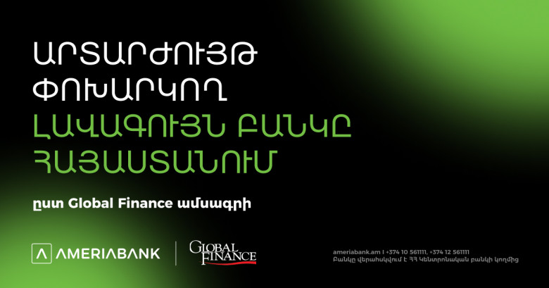 ՀասարակությունGlobal Finance ամսագիրը հրապարակել է արտարժույթ փոխարկող աշխարհի լավագույն բանկերի իր ամենամյա ցանկը, որտեղ Ամերիաբանկը ճանաչել է 2023 թվականի արտարժույթ փոխարկող լավագույն բանկը Հայաստանում։