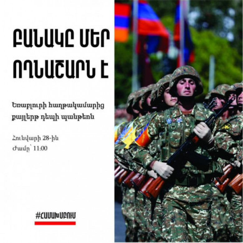 Ի աջակցություն Հայոց բանակի, ի գիտություն ողջ աշխարհի, որ բանակը մեր անկախ պետականության գլխավոր երաշխավորն է և մեր ինքնության առանցքը, ի խոնարհումն Հայրենիքի պաշտպանության նահատակների հիշատակի, մեր «Համախմբում» շարժումը հունվարի 28-ին՝ ժամը 11․00-ին «Բանակը մեր ողնաշարն է» նշանաբանով քայլերթ է կազմակերպում դեպի Եռաբլուր պանթեոն։ Քայլերթի մեկնարկը կտրվի Եռաբլուրի հաղթակամարի մոտից։