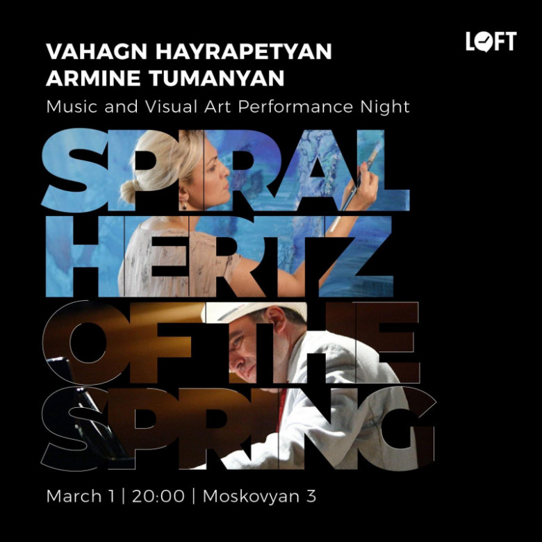 SPIRAL HERTZ OF THE SPRING նախագծի շրջանակում երաժիշտ, դաշնակահար Վահագն Հայրապետյանը եւ նկարիչ Արմինե Թումանյանը երեկոյի ընթացքում հանդիսատեսի ներկայությամբ կստեղծեն վիզուալ եւ ձայնային արվեստի նմուշ, որը փոխկապակցված կլինի անտեսանելի երանգներով ու անլսելի մեգահերցերով։