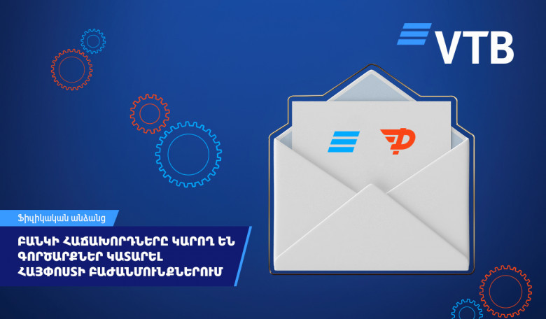 ՎՏԲ-Հայաստան Բանկի հաճախորդները կարող են համալրել հաշիվները և վճարել վարկերը Հայփոստի փոստային բաժանմունքներում