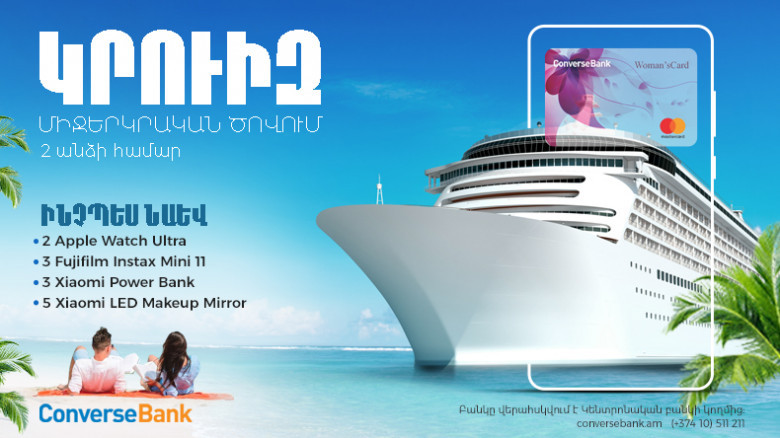 ՏնտեսությունԿոնվերս Բանկը հայտարարում է կանանց միամսյակին նվիրված արշավի մեկնարկի մասին, որի ամենահաջողակ 14 մասնակիցները կստանան արժեքավոր նվերներ՝ Միջերկրական ծովով ճամփորդության ուղեգիր երկու անձի համար, 2 Apple watches Ultra Series, 3 Fujifilm Instax Mini 11, 3 Xiaomi power bank, 5 Xiaomi LED makeup mirror: