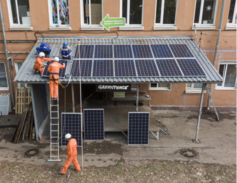 ՏնտեսությունAsi.org.ru-ն գրում է, որ Greenpeace-ն իր պահեստի տանիքին արևային էլեկտրակայան է տեղադրել: Ընդհանուր առմամբ, Greenpeace-ի Մոսկվայի պահեստի տանիքին տեղադրվել է 16 արևային մարտկոց։ Ենթադրվում է, որ ստացված էներգիան բավական է պահեստը սպասարկելու համար։