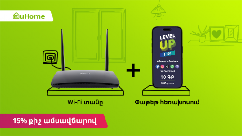 UCOM-ի՝ տան համար նախատեսված շարժական ինտերնետի UHOME ծառայությունը կներառի նաեւ LEVEL UP ձայնային ծառայության փաթեթները