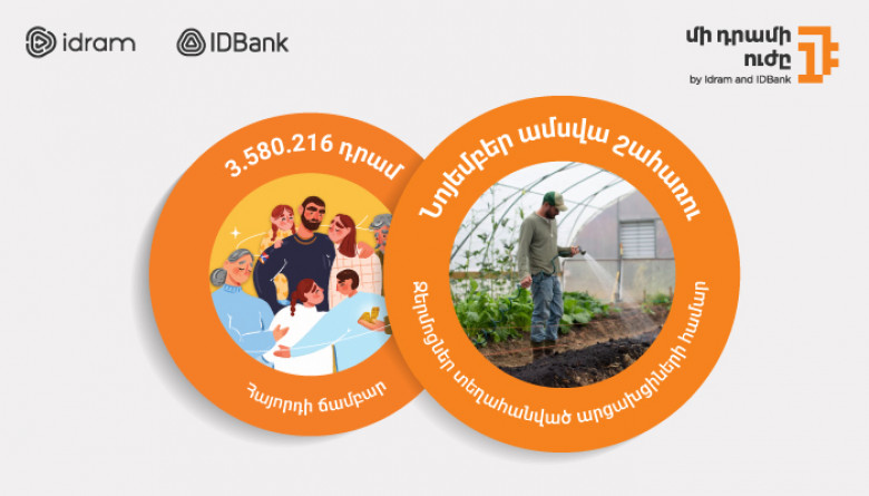 «Մի դրամի ուժի» հաջորդ՝ նոյեմբեր ամսվա ծրագիրը ևս նվիրված է Արցախից բռնի տեղահանված մեր հայրենակիցներին։ Նոյեմբեր ամսվա ընթացքում Իդրամի և Բանկի հարթակներով կատարված բոլոր վճարումներից կուտակված գումարը կփոխանցվի տեղահանված արցախցիների համար Սյունիքում ջերմոցների կառուցմանը։