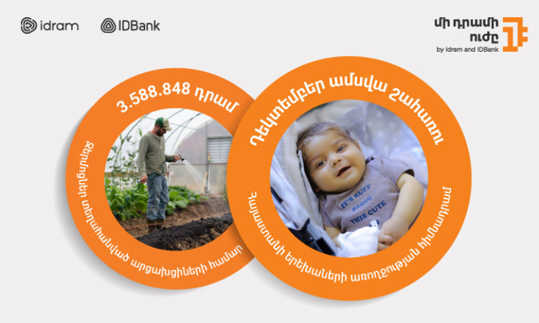 Իդրամն ու IDBank-ը հայտարարեցին նաև 2023-ի վերջին՝ դեկտեմբեր ամսվա ծրագրի շահառուի անունը․ «Մի դրամի ուժը» այս անգամ կուղղվի Հայաստանի երեխաների առողջության հիմնադրամին։