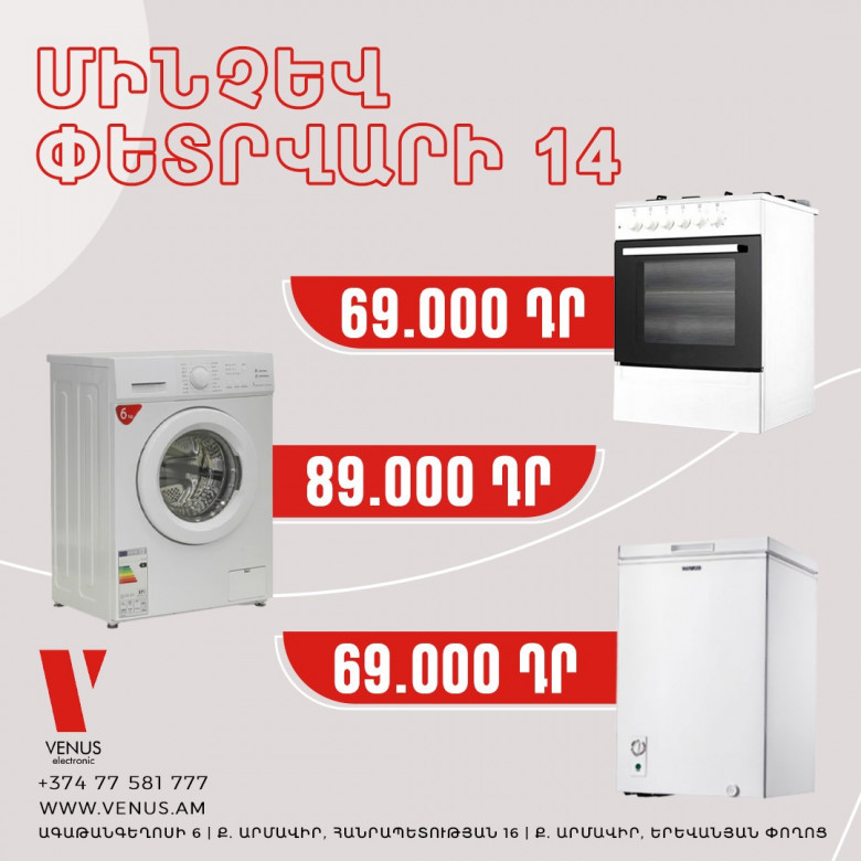 Վենուս խանութ-սրահը տրամադրում է կենցաղային տեխնիկա մեծ զեղչերով
