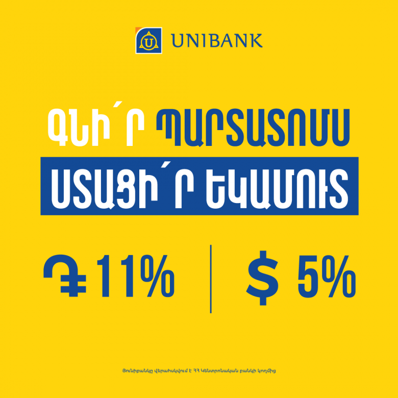 Յունիբանկը թողարկել է 11% և 5% եկամտաբերությամբ դրամային և դոլարային պարտատոմսեր