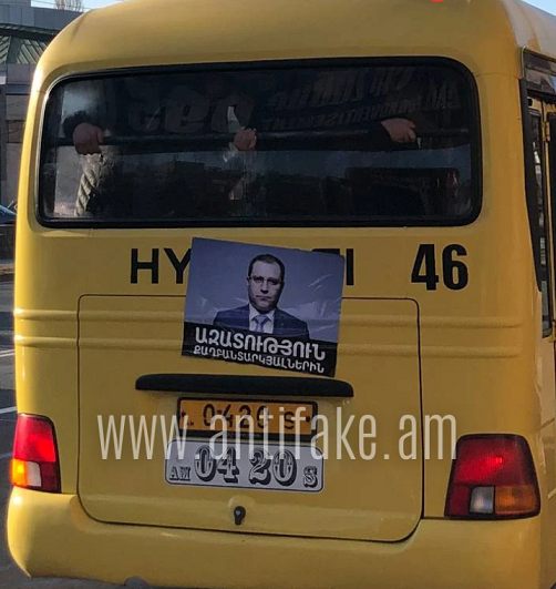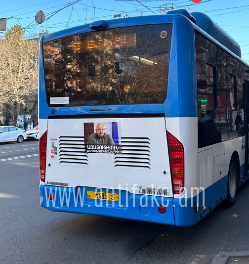 ՀասարակությունԵրևանի հասարակական տրանսպորտի վրա շարունակում են հայտնվել Նիկոլ Փաշինյանի ռեժիմի կողմից ազատությունից ապօրինի կերպով զրկված անձանց լուսանկարները։ Մասնավորապես, Երևանի ավտոբուսների վրա հայտնվել են ՀՀԿ ԳՄ անդամ Արմեն Աշոտյանի, «ՎԵՏՕ» շարժման հիմնադիր Նարեկ Մալյանի և Վանաձորի համայնքապետ Մամիկոն Ասլանյանի «քաղբանտարկյալ» գրությամբ լուսանկարները։ Լուսանկարներն արված են մայրաքաղաքի տարբեր հատվածներում։
