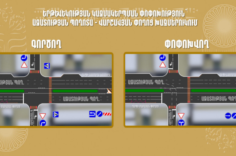 մայրաքաղաքում տրանսպորտային հոսքերի անցանելիությունն ավելացնելու նպատակով ս.թ. ապրիլի 16-ից երթևեկության կազմակերպման փոփոխություն կկատարվի Ազատության պողոտա - Վարշավյան փողոց խաչմերուկում։