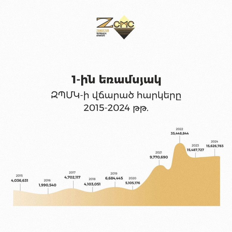 Ի դեպ, եթե ԶՊՄԿ-ն վերջին երեք տարում անշեղորեն առաջին հարկատուն է՝ տարեկան կտրվածքով, նախորդող 7 տարների ընթացքում ԶՊՄԿ-ն առաջին հորիզոնականում է եղել միայն մեկ անգամ, մյուս տարիներին զբաղեցնելով հարկատուների ցուցակի, 4-րրդ, 5-երորդ, նույնիսկ 16-երորդ տեղերը։ Սրանք ընդամենը փաստեր են, որոնք այլ կերպ տեսնել ու ներկայացնել հնարավոր է միայն միտումի ու դիտավորության և ոչ օբյեկտիվ լրագրության պարագայում։