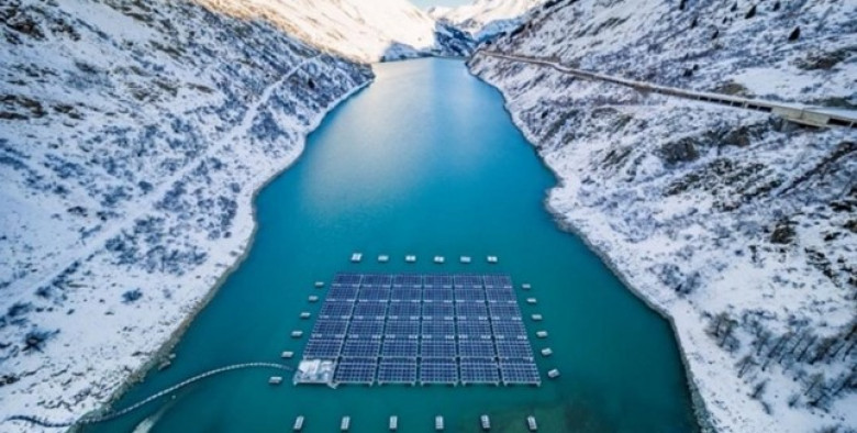 Շվեյցարիան իրականացրել է ֆոտոգալվանային մեծ նախագիծ Ալպերում տեղադրելով լողացող արևային էլեկտրակայան մեծ քանակությամբ վահանակներով «մաքուր» էներգիա արտադրելու համար։ Նախատեսվող ջրամբարը գտնվում է ծովի մակարդակից մոտ 1810 մ բարձրության վրա։ Կան 35 հարթակներ երկկողմանի արևային մարտկոցներով, որոնք զբաղեցնում են ջրամբարի մակերեսի մոտ 2 %-ը։ Լողացող հարթակները լինում են ջրի մակերեսին երկար ժամանակ՝ հունիսից դեկտեմբեր: Այդ պահին ջրամբարը լցվում է ջրով ձյան հալման պատճառով։ Հունվարից մայիս ընկած ժամանակահատվածում կայանը գտնվում է հատակին, երբ ջուրն իջնում է: