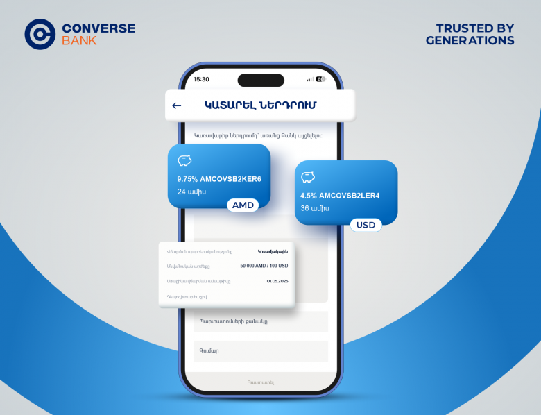 ՀասարակությունԿոնվերս Բանկը հայտարարում է պարտատոմսերի հերթական տրանշի տեղաբաշխման մեկնարկը:
