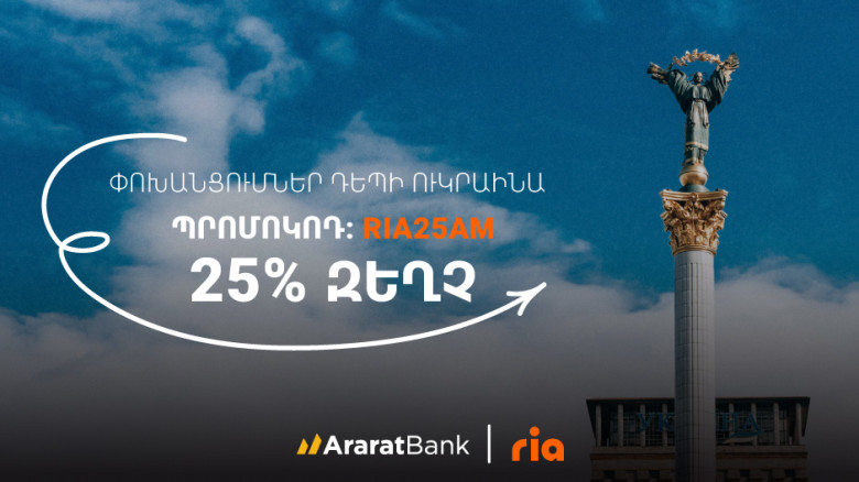 ԱրարատԲանկում RIA փոխանցումներ դեպի Ուկրաինա՝ 25% զեղչով