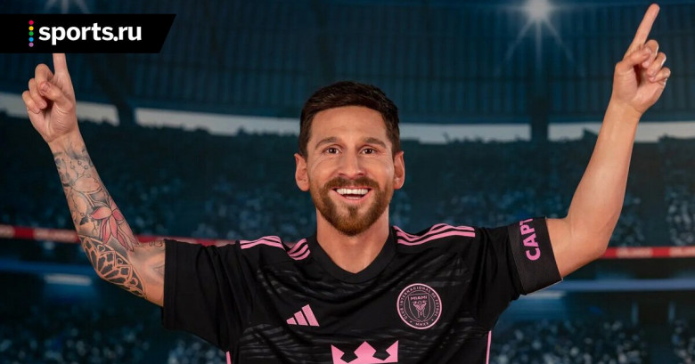 Ժպտացող Մեսսին պատկերված է «Ինտեր Մայամիի» մարզաշապիկով, ձեռքերն ուղղած վերև: