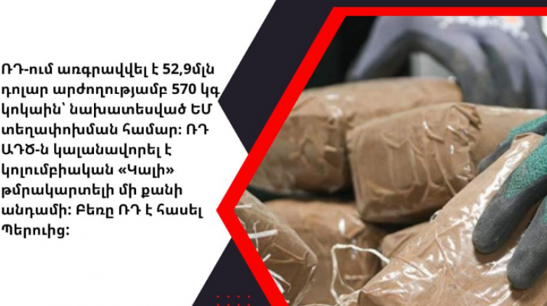 ՌԴ ԱԴԾ-ն կալանավորել է կոլումբիական «Կալի» թմրակարտելի մի քանի անդամի: Բեռը ՌԴ է հասել Պերուից: