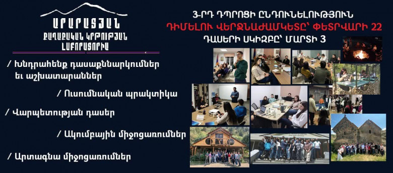 ՀասարակությունՄեկնարկում է «Հայաքվե» ազգային քաղաքացիական միավորման կրթական հարթակի՝ Արարատյան քաղաքական կրթության լաբորատորիայի 3-րդ քաղաքական դպրոցի ընդունելությունը։ Կրթությունը և դպրոցի միջոցառումներին մասնակցությունն անվճար է։