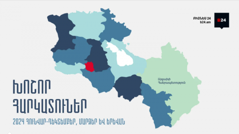 Մարզերում գրանցված ընկերությունների կողմից մուծվել է հարկերի 18.1% կամ մոտ 321.2 մլրդ ՀՀ դրամ հարկ, ինչը 2023թ. համադրելի ցուցանիշի համեմատ աճել է 15.7 մլրդ ՀՀ դրամով կամ 5.1%-ով։