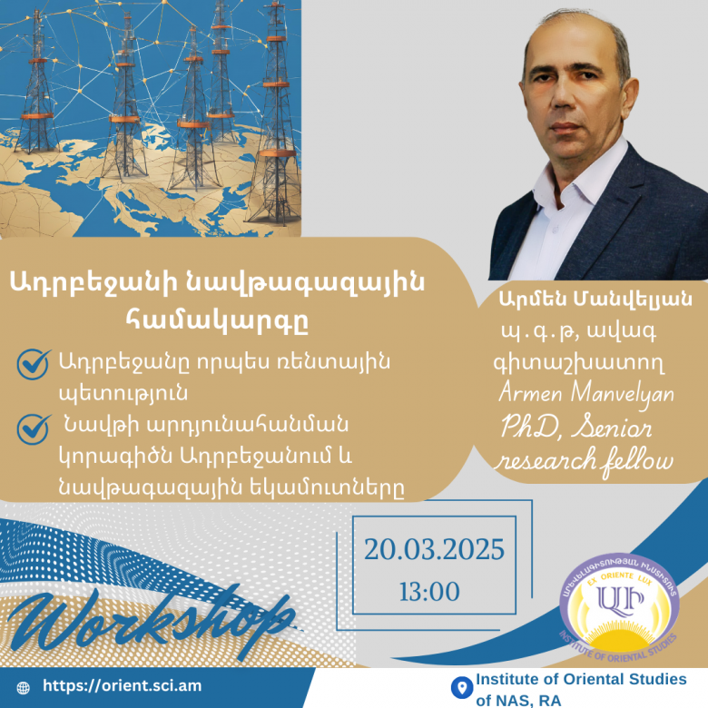 BlogԳԱԱ Արևելագիտության ինստիտուտի Միջազգային հարաբերությունների բաժնում տեղի ունեցավ աշխատաժողով՝ «Էներգետիկ աշխարհաքաղաքականությունը միջազգային համակարգում» խորագրով, որի շրջանակներում բանախոսեց ԱԻ ավագ գիտաշխատող Արմեն Մանվելյանը: Վերջինս անդրադարձ կատարեց էներգետիկ աշխարհաքաղաքականության ուսումնասիրության մեթոդաբանությանը: