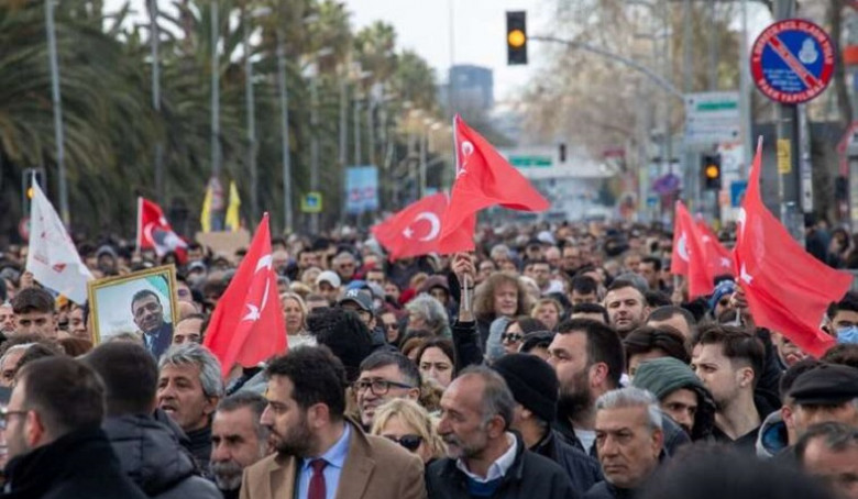 Նույն օրը ընդդիմության տասնյակ հազարավոր կողմնակիցներ հավաքվել են Ստամբուլի քաղաքապետարանի մոտ՝ բողոքելու, ըստ նրանց, քաղաքական դրդապատճառներով Էրդողանի մրցակցի հետապնդման դեմ: «Իմամօղլուն մի կողմից բանտում է, մյուս կողմից՝ նախագահության ճանապարհին»,- AP գործակալությունը մեջբերում է Օզելի խոսքը, որը նա ասել է հանրահավաքի ժամանակ: Ցուցարարների առջև ելույթ է ունեցել նաև նախագահի թեկնածուի կինը՝ Դիլեքկայա Իմամօղլուն։