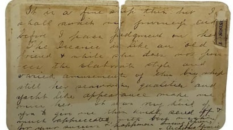 Письмо датировано 10 апреля 1912 года, днем, когда он поднялся на борт, и отправлена в Квинстаун в 15:45 11 апреля, а в Лондон - 12 апреля. В нем говорилось: «Это прекрасный корабль, но я дождусь окончания своего путешествия, прежде чем вынесу о нем суждение».