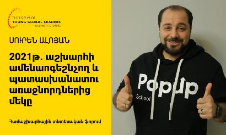 ОбществоВсемирный экономический форум (ВЭФ) удостоил всемирного признания генерального директора и основателя образовательной платформы DASARAN Сурена Алояна за его уникальный профессиональный и общественный вклад. Форум чествовал Сурена Алояна как Mолодого глобального лидера 2021 года. Сурен Алоян - первый гражданин Армении, удостоенный этого титула ВЭФ. Как молодой лидер ВЭФ Сурен Алоян будет представлять Армению в сообществе всемирно известных молодых лидеров. Всемирный экономический форум — это платформа, объединяющая более 1400 выпускников из 120 стран. К платформе по-прежнему присоединяются новаторы в сфере гражданского бизнеса, предприниматели, технологические лидеры, преподаватели, активисты, художники, журналисты и другие.