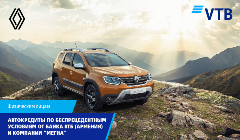 ОбществоБанк ВТБ (Армения) и ООО «МЕГНА» совместно предлагают клиентам приобрести автомобили марки Renault по беспрецедентно выгодным условиям кредитования.