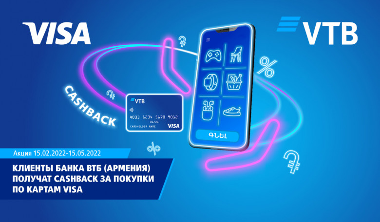 Клиенты Банка ВТБ (Армения) получат кешбэк за покупки по картамVisa