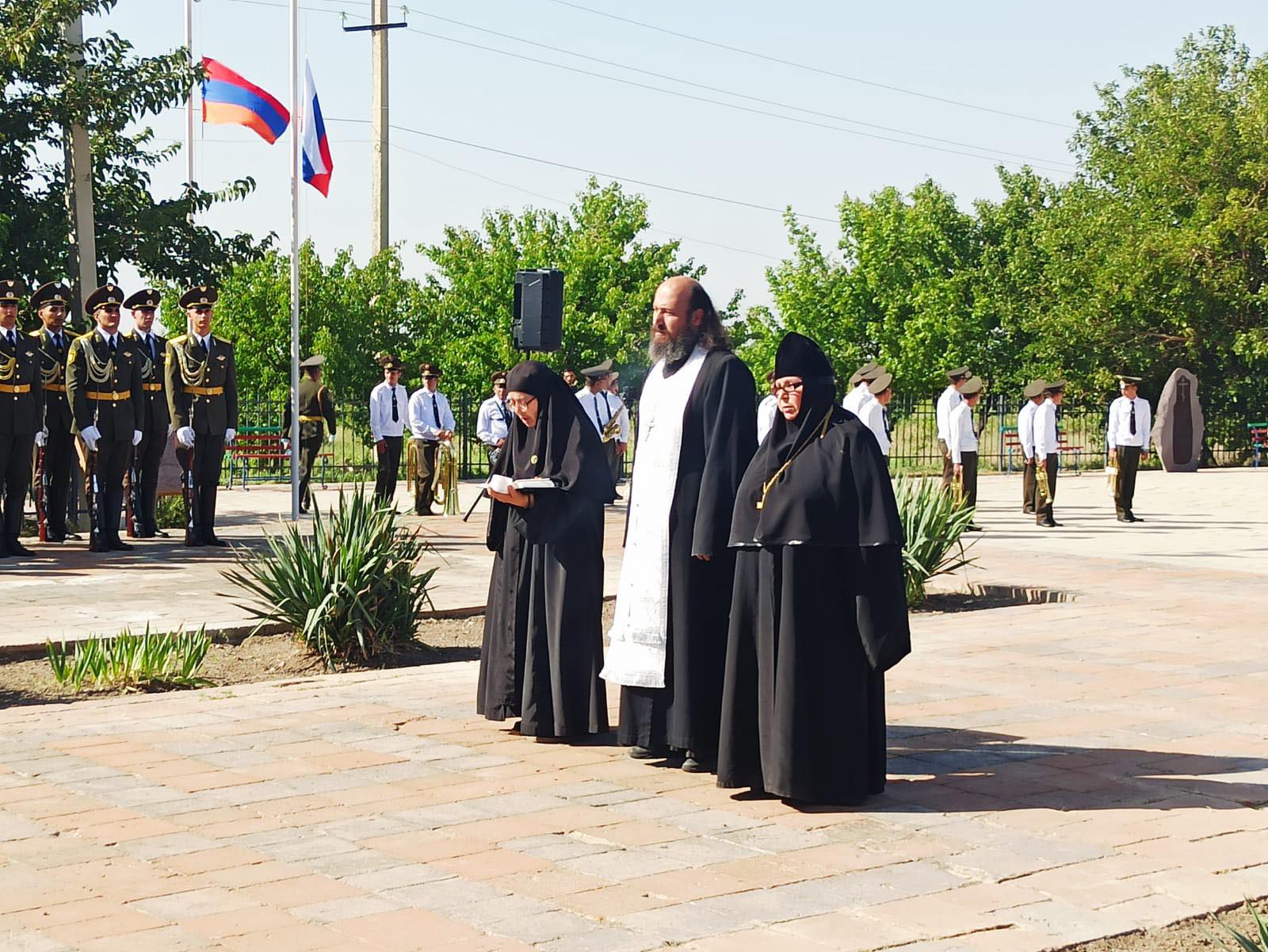 В акции памяти приняли участие представители органов власти Армении, администрации Армавирской области, Посольства РФ в РА, Пограничного управления ФСБ России в Армении, Русского Дома в Армении, духовенства ААЦ и РПЦ, Вооруженных сил РА и РФ. Перед многочисленными соотечественниками, ветеранами, представителями общественных, молодежных, казачьих объединений выступили вице-губернатор Армавирской области А. Аветисян, временный поверенный в делах РФ в РА М.Селезнев, мэр г.Эчмиадзина Д. Гаспарян, командующий объединенной армяно-российской группировкой войск генерал-лейтенант Т. Парванян, военный атташе при Посольстве РФ в РА В. Косов. В своей речи выступающие отдали дань памяти погибшим при защите Святого Эчмиадзина русских и армянских воинов , отметив, что никаким внешним силам не разорвать прочные узы многовековой дружбы армянского и русского народов.