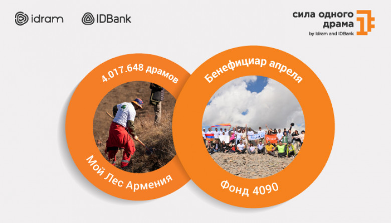 Компании сообщают, что апрельским бенефициаром инициативы «Сила одного драма» стал благотворительный фонд «4090». Татевик Вардеванян, руководитель отдела по коммуникациям Idram и IDBank, отмечает: «Будучи основанным после 44-дневной Арцахской войны, фонд помогает защитникам родины, способствуя их стремлению жить и работать на родине посредством возмещения расходов на обучение, образовательных программ, повышения квалификации и тренингов․ Поскольку образованная и профессионально подготовленная молодежь является основой нашего общества, в этом месяце мы решили, что бенефициаром апреля станет фонд 4090».